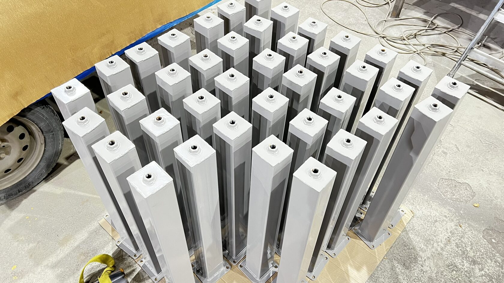 Изготовили стойки из профильной трубы 80х80 на заказ.